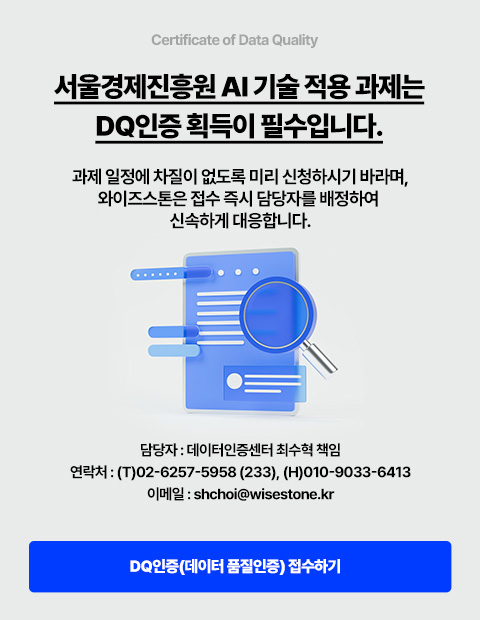 와이즈스톤은 법 제20조제3항에 따라 과학기술정보통신부로부터 지정 된 데이터 품질인증기관입니다.